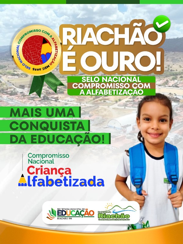 Riachão celebra mais uma importante vitória na área da educação. O município foi reconhecido com o Selo Ouro do Compromisso Nacional com a Alfabetização, destacando-se pelos resultados alcançados no processo de ensino e aprendizagem das crianças.